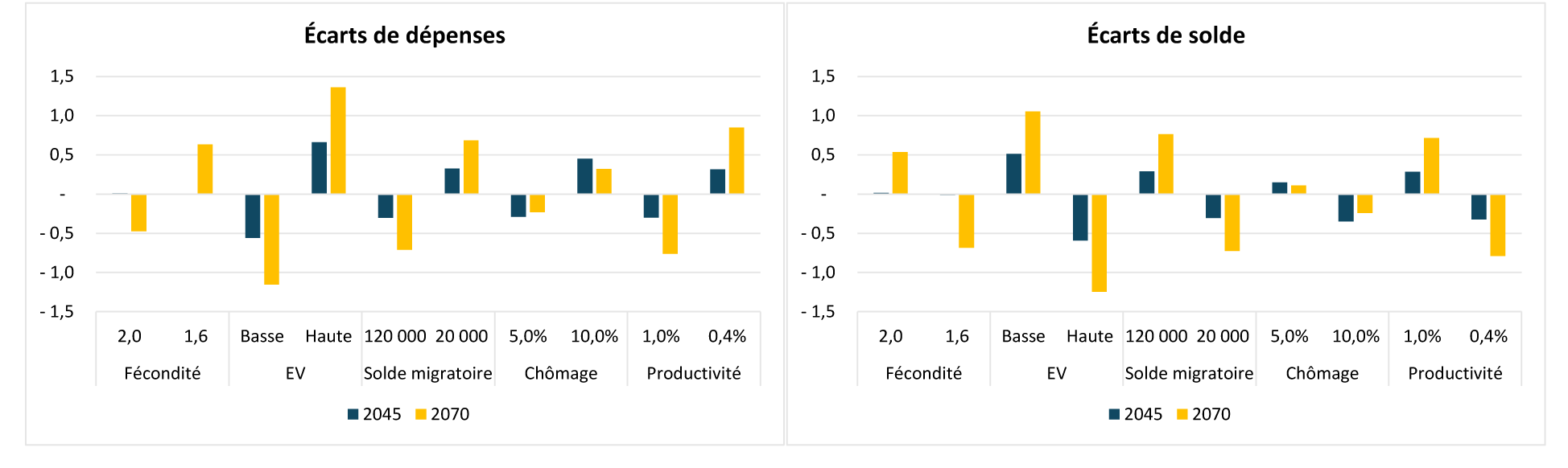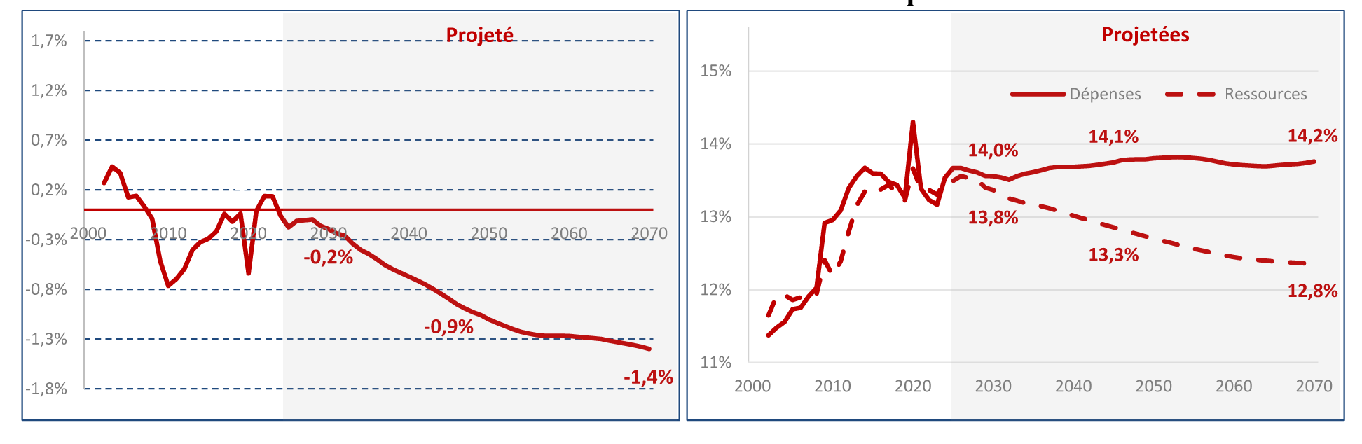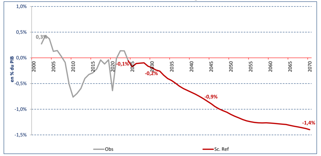 -0,2 % du PIB en 2030 et -1,4 % du PIB en 2070.